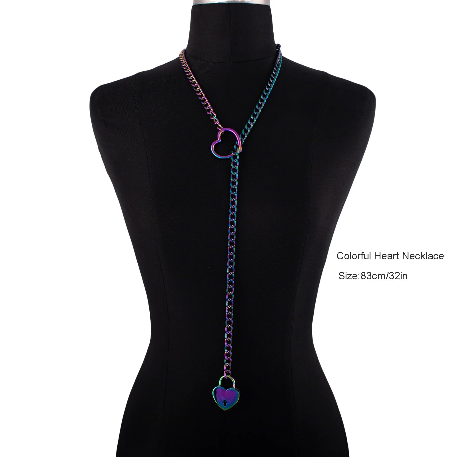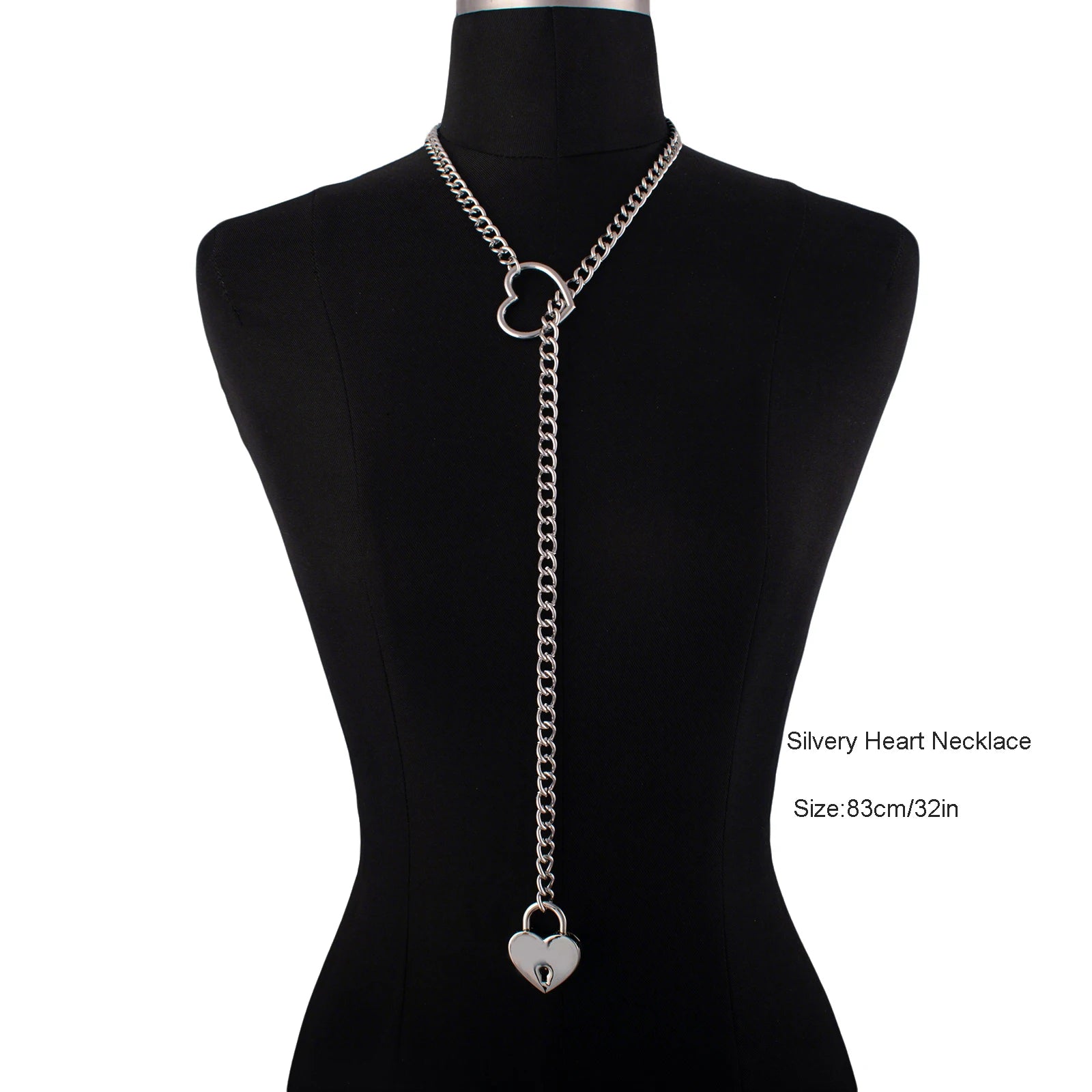 Heart Lock Slip Chain Necklace Love Chains Choker Padlock Collar for Women Punk Goth Jewelry Gothic Aesthetic Accessories
